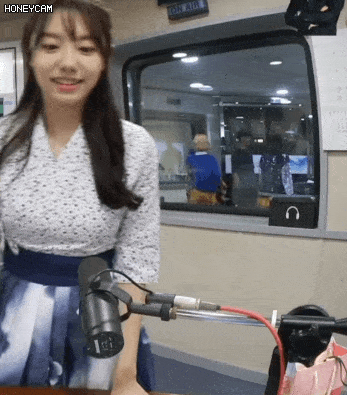 라디오 방송중 뒤에 걸그룹이 등장하고